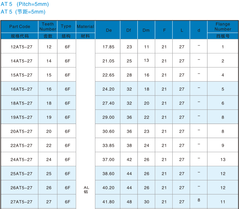 直孔同步轮(AT5 AT10型)